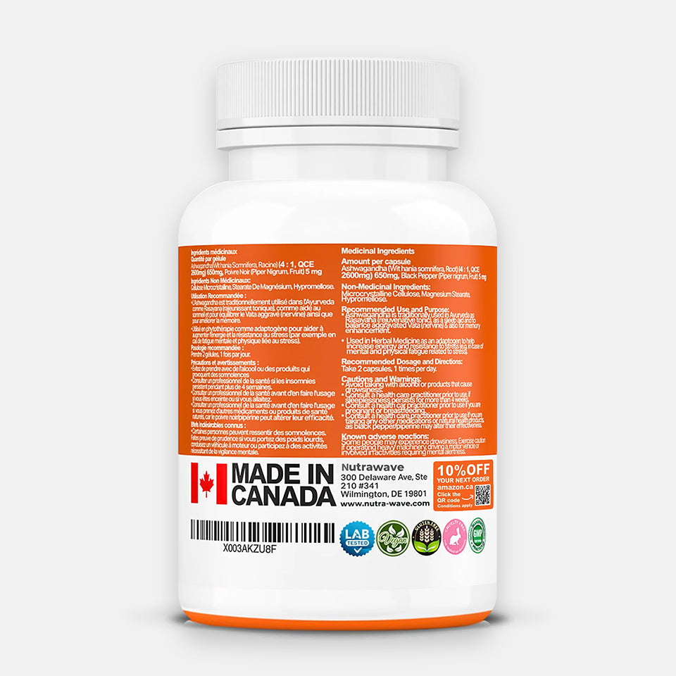 Ashwagandha Powder with Black Pepper Extract Capsules - 2600mg